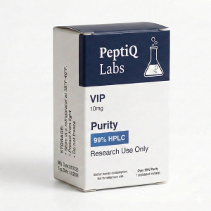 Product Overview PeptiQ Labs presents VIP (Vasoactive Intestinal Peptide) 10mg, a high-purity peptide designed for advanced in-vitro research applications. VIP is a biologically active neuropeptide involved in vasodilation, smooth muscle relaxation, neurotransmission, and immune modulation. This 10mg lyophilized formulation is optimized for researchers studying cellular signaling pathways, receptor interactions, and peptide pharmacodynamics. Quality Assurance Our VIP is synthesized under strict laboratory-grade conditions. Each batch undergoes rigorous analytical verification to ensure purity and reproducibility, supporting reliable experimental results. Key Specifications: